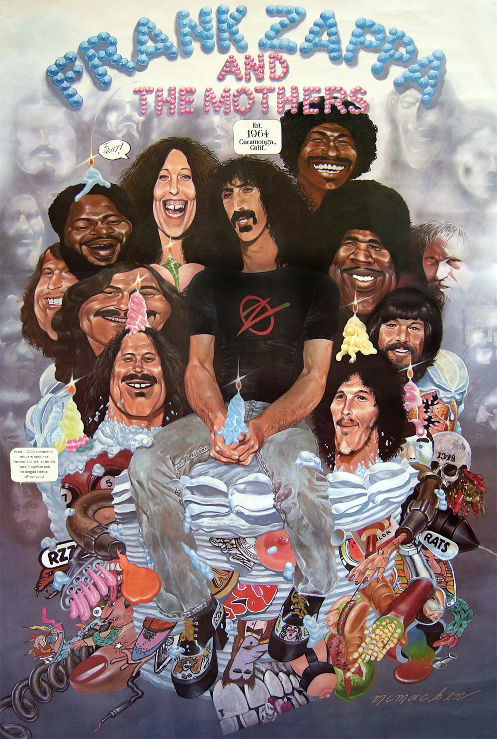 It Can’t Happen Here – This atonal vocal simulated nightmare from Freak Out reappears arranged for the full band. Everyone sings, and there’s a musical sting and crash between the Minnesota and DC lines, simulating the album. They do the rest of the “tune” and then Frank simulates the beginning of Monster Magnet by asking Suzie Creamcheese (played by George) “What’s got into you?”. We then hear a synth siren and some screams a la Monster Magnet and they transition into Hungry Freaks Daddy. Frank would frequently ad lib a bit at this end section, asking George other questions. The earliest performance was slightly different; The outro was significantly longer and featured more mumbling and tweaky keyboard noises. Usually preceded by Dupree’s Paradise and a great start to the oldies medley.